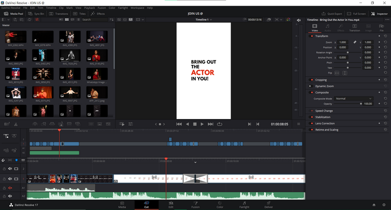 Utilized Da Vinci Resolve to edit multimedia content, ensuring professional standards of quality and coherence.