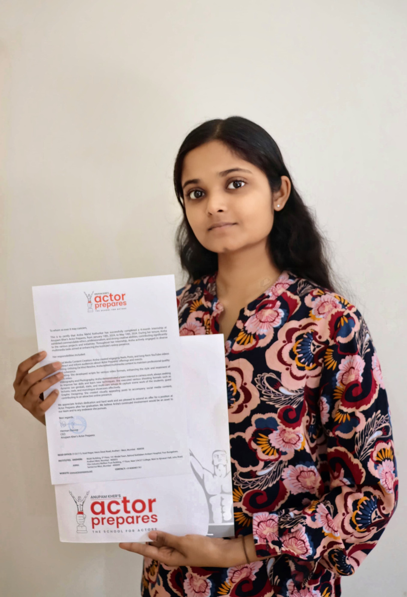 Hi there, I am Arsha Kothurkar. You can call me Arsha. I undertook my internship for a duration of four months at Anupam Kher's Actor Prepares - The School for Actors in India.